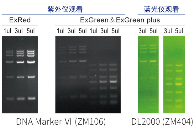 特別提示:使用紫外成像儀,請(qǐng)選擇ExRed、ExGreen plus、ExGreen;使用可見(jiàn)光裝置,請(qǐng)選用ExGreen plus、ExGreen。