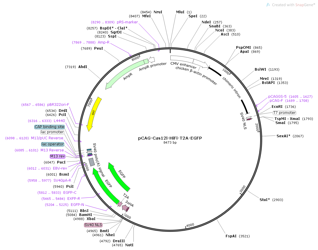 產(chǎn)品名稱:pCAG-Cas12i-HiFi-T2A-EGFP質(zhì)粒