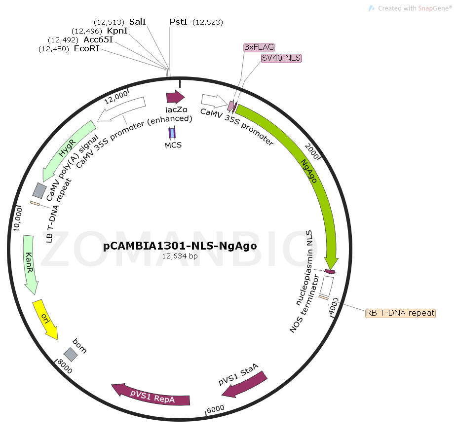 pCAMBIA1301-NLS-NgAgo是一個在植物細胞中表達NgAgo蛋白酶的質粒。