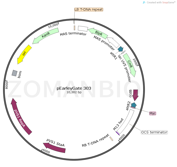 pEarleyGate 303是一個(gè)植物細(xì)胞Gateway系統(tǒng)表達(dá)質(zhì)粒。