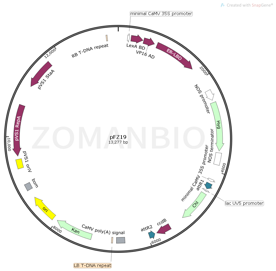 pFZ19是一個(gè)植物細(xì)胞Gateway系統(tǒng)表達(dá)質(zhì)粒。