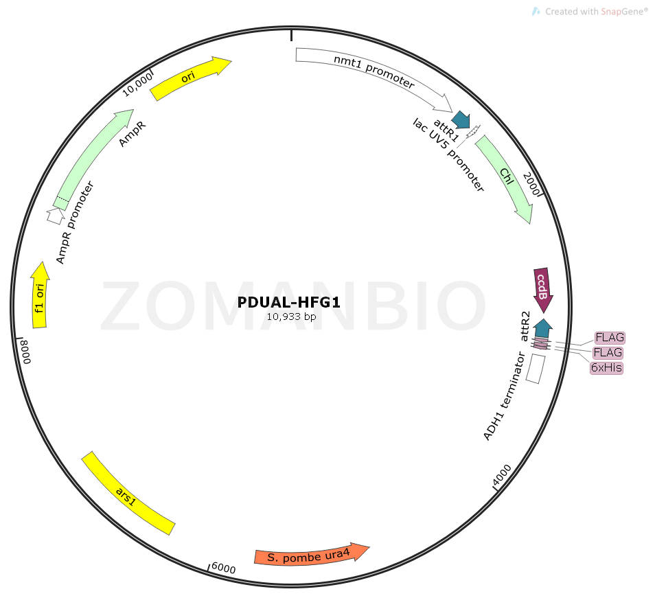 pDUAL-HFG1釀酒酵母Gateway系統(tǒng)表達質(zhì)粒,采用維生素B1抑制啟動子nmt啟動子。