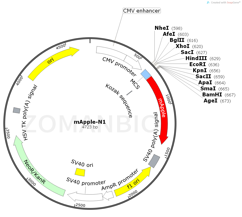 ZK2074 mApple-N1哺乳熒光質(zhì)粒.txt