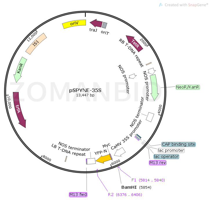 pSPYNE-35S植物雙分子熒光質(zhì)粒。