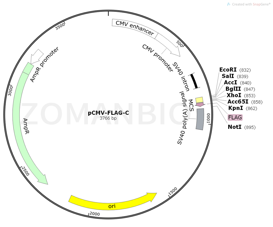 pCMV-FLAG-C是一個哺乳細胞過表達質粒,C端有FLAG標簽。