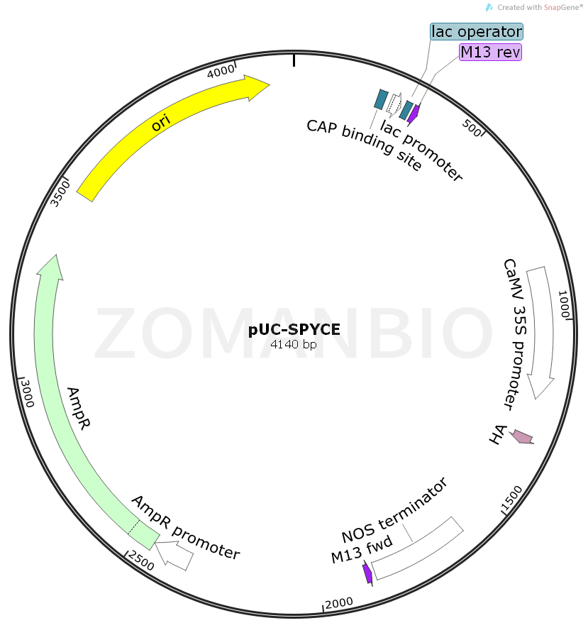 pUC-SPYCE是一個植物BIFC雙分子熒光質粒。