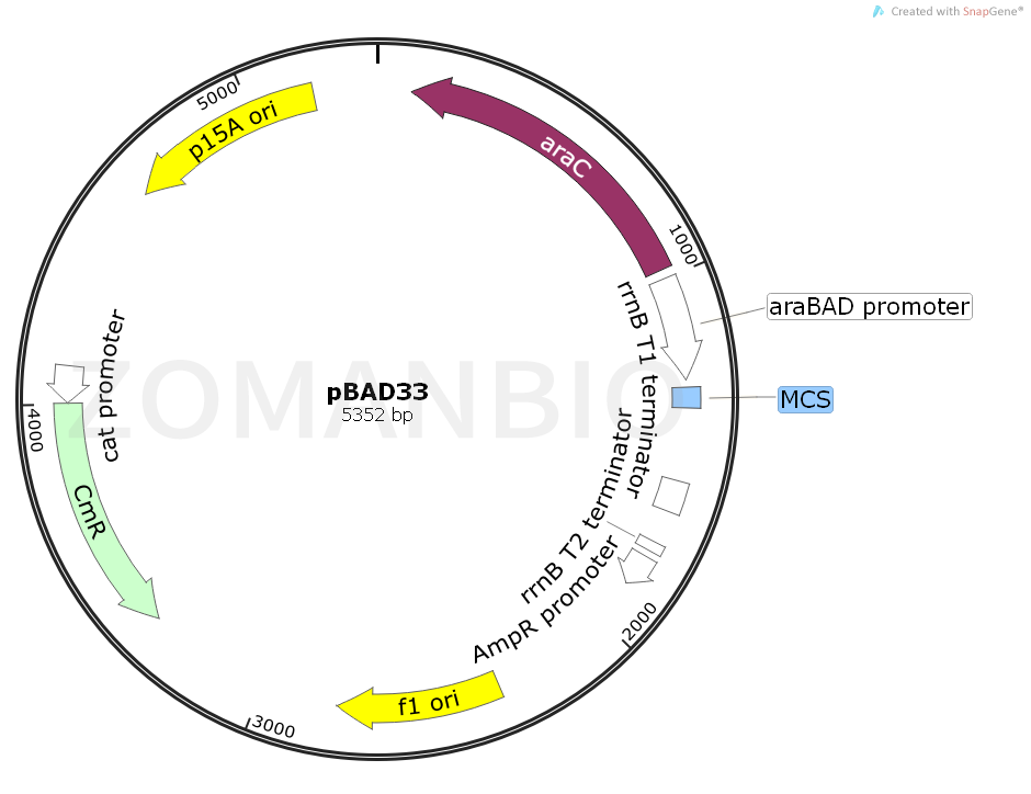pBAD33是一個大腸桿菌pBAD系列表達(dá)質(zhì)粒。