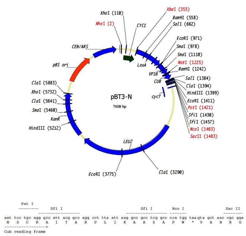 pBT3-N是一個膜蛋白酵母雙雜交質(zhì)粒。
