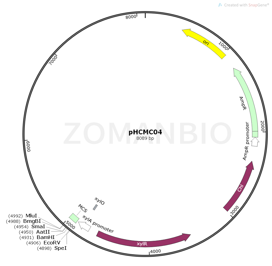 pHCMC04是一個(gè)枯草芽孢桿菌整合木糖誘導(dǎo)表達(dá)質(zhì)粒。