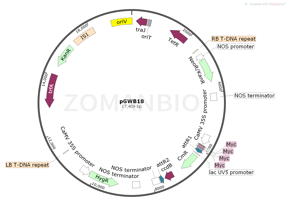 pGWB18是一個(gè)GateWay系列的植物表達(dá)質(zhì)粒。