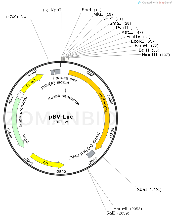 ZK2075 pBV-Luc哺乳報告質(zhì)粒.txt