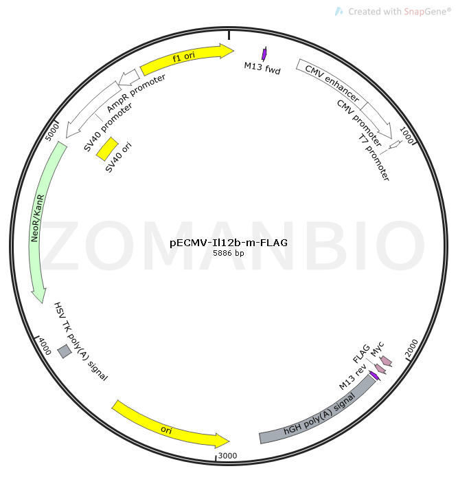 ZK6196 pECMV-Il12b-m-FLAG小鼠基因質(zhì)粒.txt